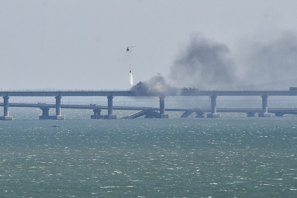 Ukrajinskí predstavitelia opakovane pohrozili možným útokom na most. Zodpovednosť za požiar však oficiálne nepriznali. „Krym, most, začiatok… Všetko nelegálne treba zničiť, všetko ukradnuté vrátiť Ukrajine a všetko, čo súvisí s ruskou okupáciou, treba vyhnať,“ napísal na sociálnej a mikrobologovacej sieti Twitter poradca ukrajinského prezidenta Volodymyra Zelenského Mychajlo Podoľak.