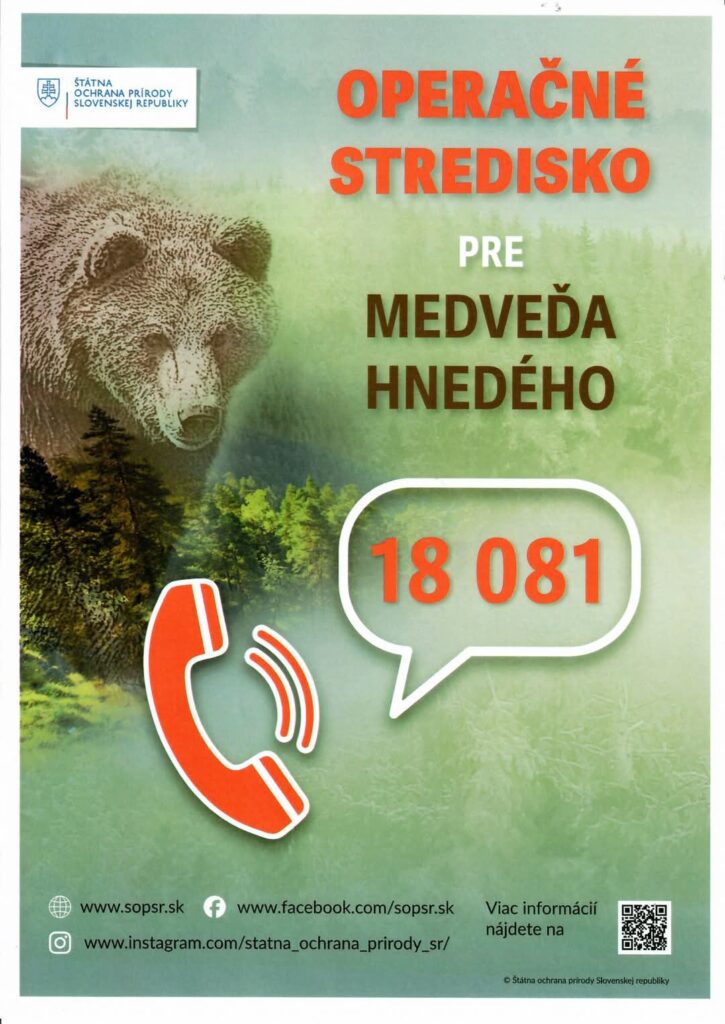 Situáciu rieši zásahový tím a poľovníci. V prípade ohrozenia kontaktujte Operačné stredisko pre medveďa hnedého na bezplatnom telefónnom čísle 18 081.