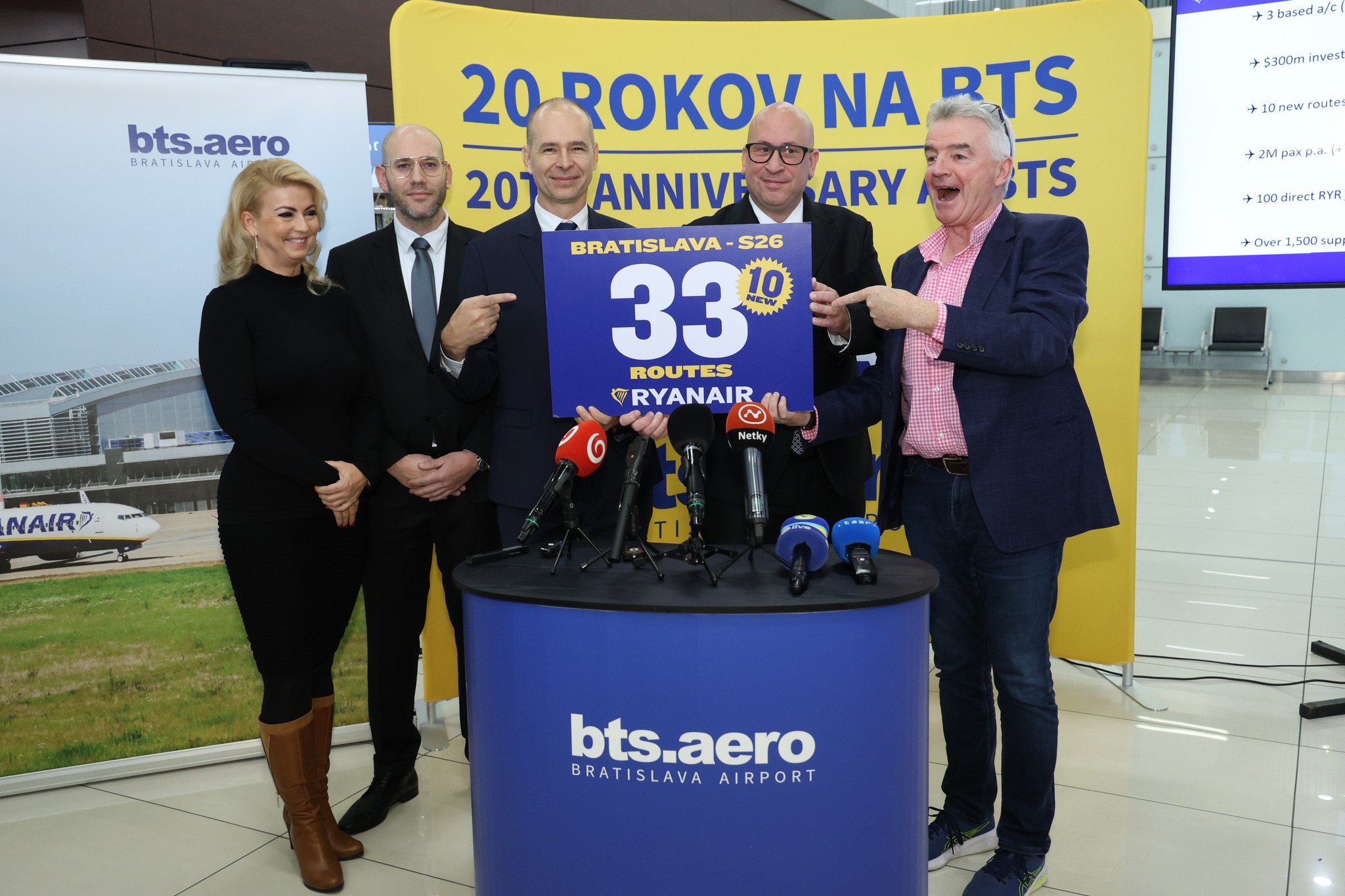 Dnes ich v Bratislave osobne predstavil šéf spoločnosti Michael O’Leary, ktorý zároveň oslávil 20 rokov pôsobenia Ryanairu na našom letisku.