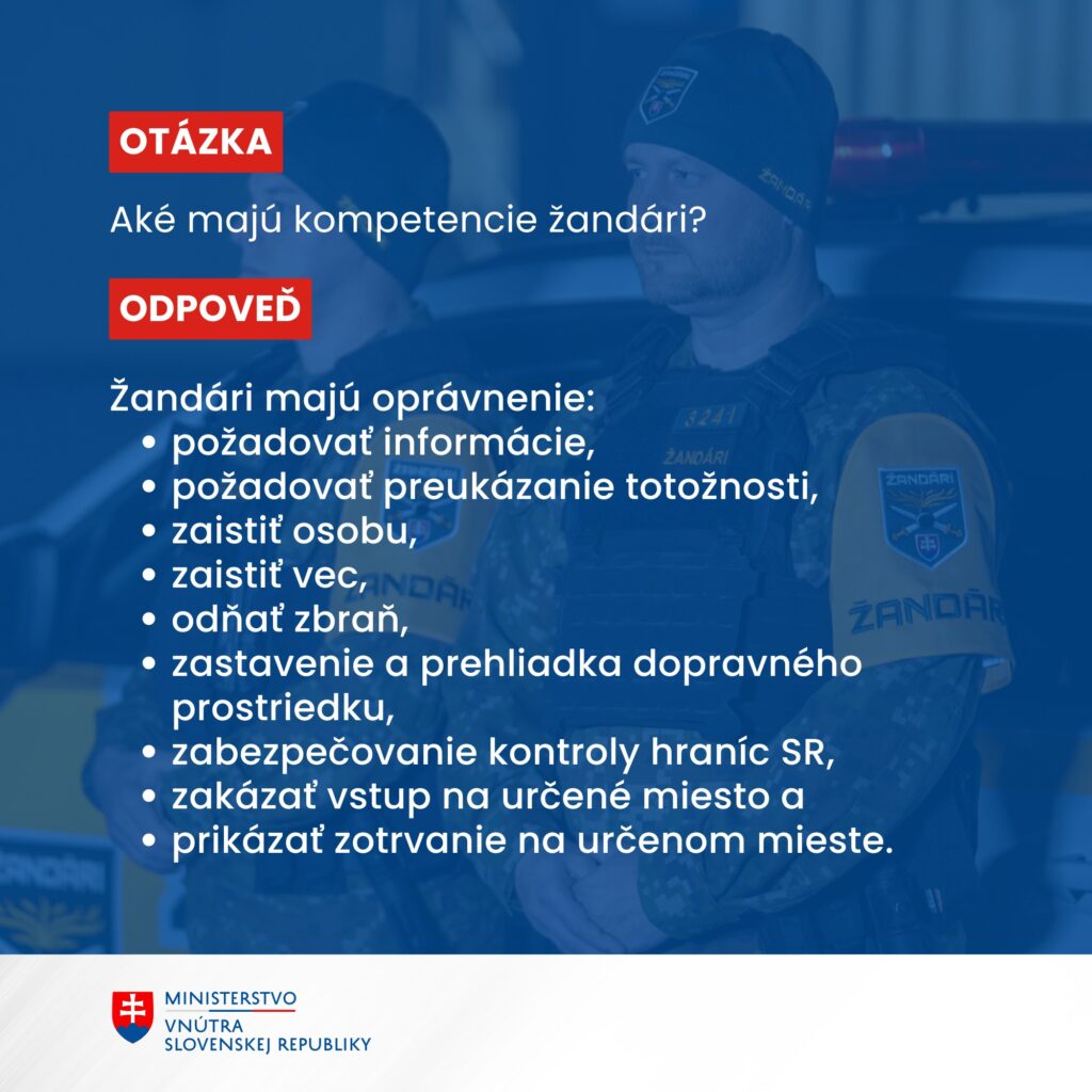 Žandársky zbor vznikol na základe zákona o niektorých opatreniach na zvýšenie odolnosti Slovenskej republiky v oblasti obrany a bezpečnosti, o brannej povinnosti. Prvé žandárske hliadky nastúpili do terénu koncom minulého týždňa. Ponúkame vám prehľad ich právomoci.